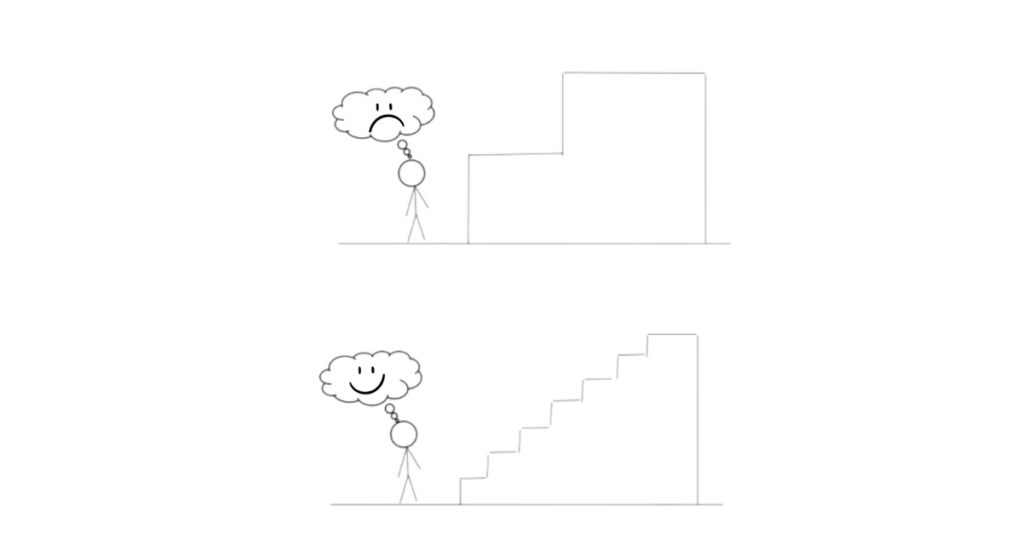 Príklad: Chcem začať behať, cvičiť jogu a meditovať. Veľmi rýchlo ale pochopím, že mám veľmi málo času, a okrem toho po behaní už vôbec nevládzem cvičiť a meditovať. Začne ma to demotivovať a frustrovať a o pár dní, sa vrátim do zaužívaného cyklu činností, keďže sa pri nich cítim oveľa lepšie a mám viac energie. Skúsim teda začať opäť, tentokrát však najprv iba s meditáciou.